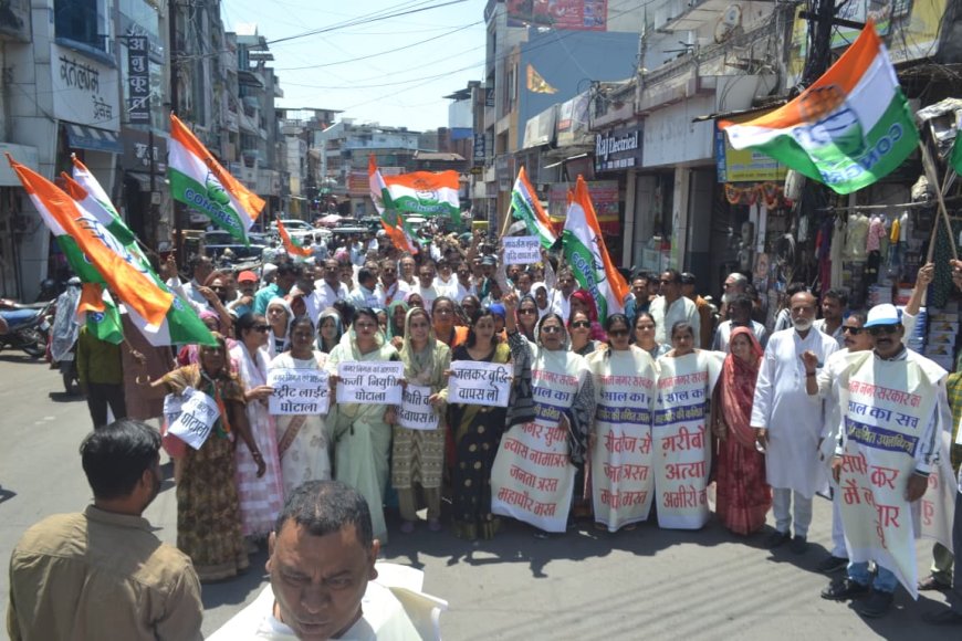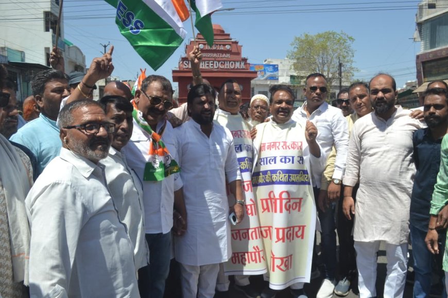 रतलाम (प्रकाशभारत न्यूज़) शहर (जिला) कांग्रेस कमेटी रतलाम के नेतृत्व में सोमवार को शहर में जन आक्रोश रैली निकाली गई। रैली शहर सराय स्थित शहीद चौक से प्रारंभ होकर शहर के प्रमुख मार्गों से होते हुए नगर निगम पहुंची, जहां कांग्रेस कार्यकर्ताओं ने जोरदार नारेबाजी करते हुए विरोध प्रदर्शन किया।