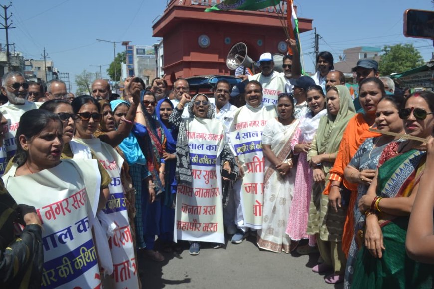 भ्रष्टाचार और टैक्स बढ़ोतरी के खिलाफ सड़कों पर उतरी कांग्रेस : नगर निगम का किया घेराव : निगमयुक्त को सौपा ज्ञापन : उग्र आंदोलन की दी चेतावनी