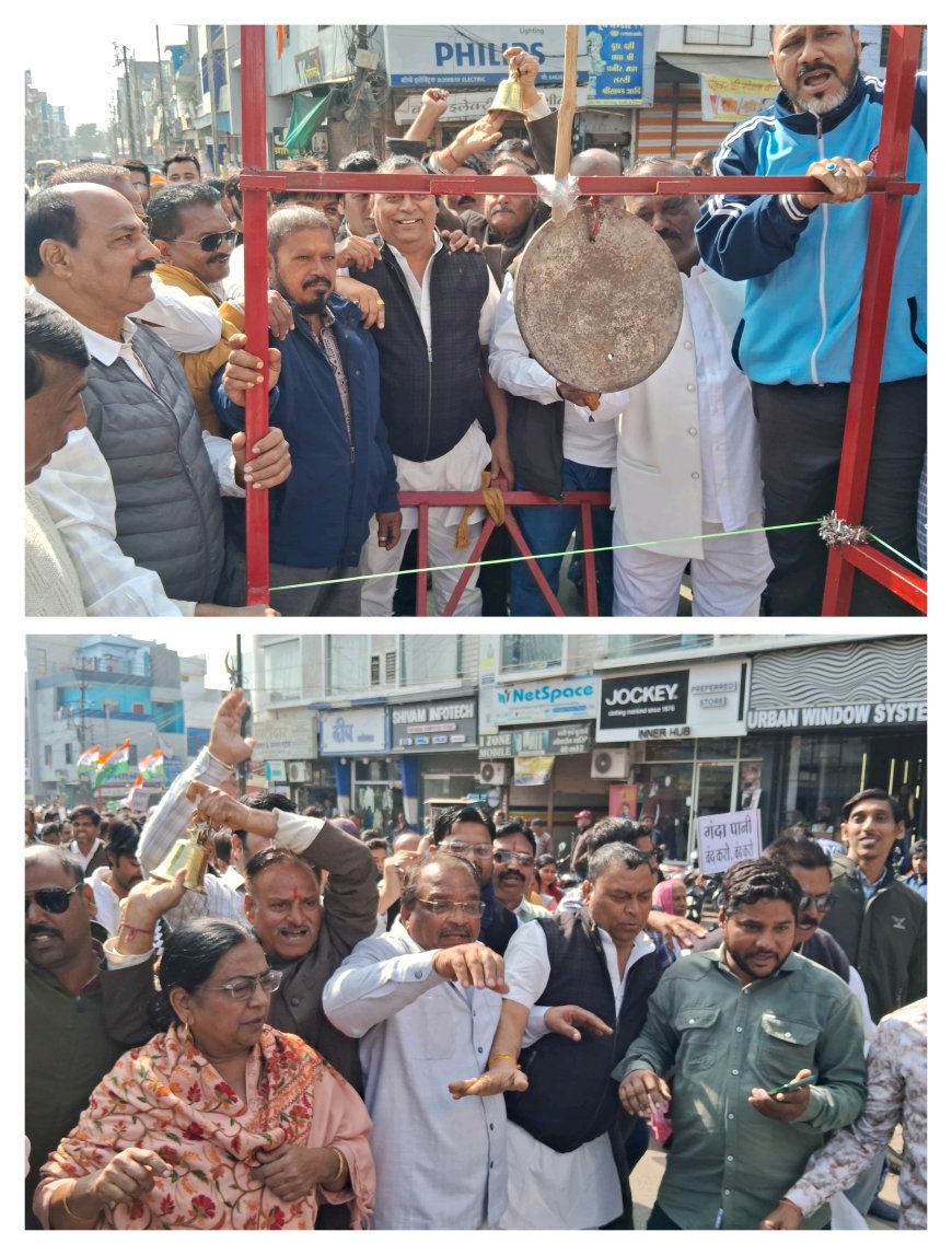 कांग्रेस का घंटा बजाओ आंदोलन : पुलिस और कांग्रेस के कार्यकर्ताओं के बीच जमकर धक्का-मुक्की, झड़प :घंटा बजाकर जाता विरोध : कांग्रेसी कार्यकर्ताओं को लिया हिरासत में : मंत्री चेतन्य काश्यप के घर का घेराव करने जा रहे थे कांग्रेस कार्यकर्ता
