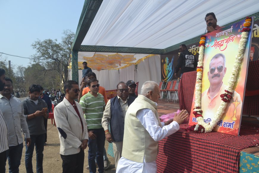 पहले मैच की शुरुआत स्वर्गीय अश्विनी शर्मा को श्रद्धांजलि अर्पित कर की गई। उद्घाटन अवसर पर मुख्य अतिथि पूर्व गृह मंत्री हिम्मत कोठारी, भाजपा के पूर्व जिला अध्यक्ष बजरंग पुरोहित, भाजपा के पूर्व कार्यालय मंत्री राकेश मिश्रा एवं समाजसेवी व खेल प्रेमी नीलेश पटेल उपस्थित रहे।