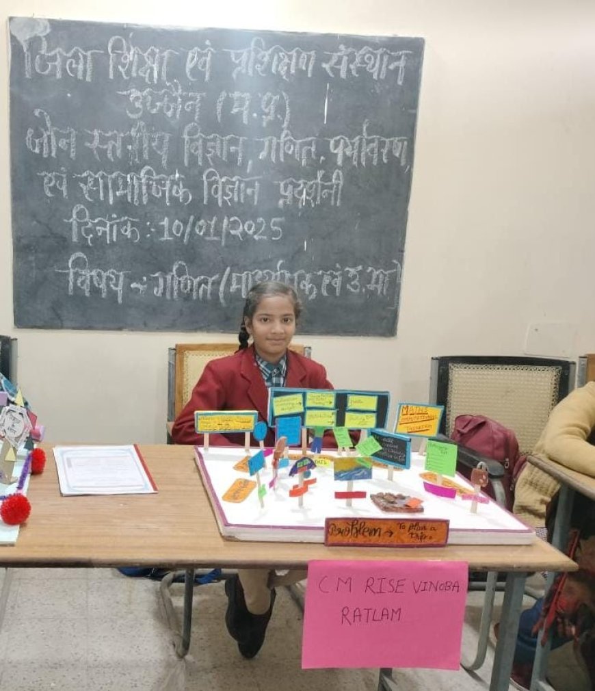 उज्जैन में आयोजित जोन स्तरीय विज्ञान मेला प्रतियोगिता में सी एम राइज विनोबा रतलाम की छात्रा कुमारी दिष्टी मीणा को मिला सम्मान
